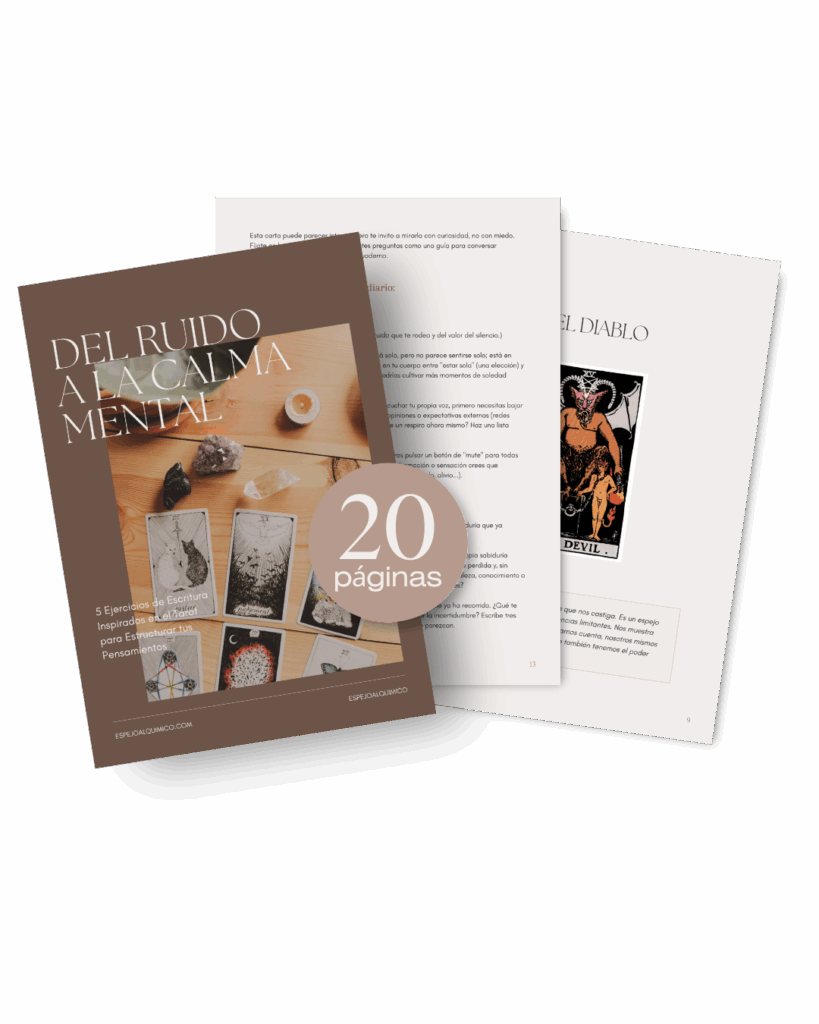 También he creado guías y cuadernos de trabajo para acompañarte a través del tarot en temas concretos del proceso interior, como el ruido mental, la intuición o la gestión emocional.